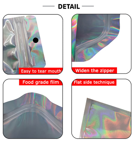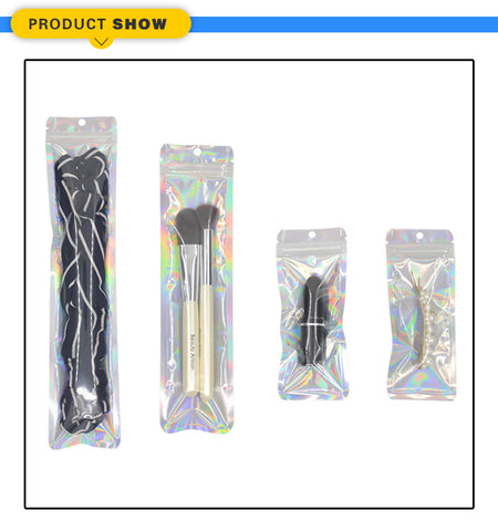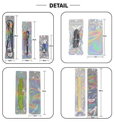 100 Pcs Hologram Aluminum Foil And Transparent Zip Lock Bags Long Plastic Pouch Watch Pen Jewelry Cosmetic USB DATA Cable Bags
