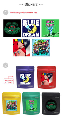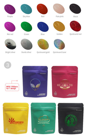 100 Pcs 1g-3.5g Colors California Mylar Resealable 3.5g Packaging Bag Zipper Pouches Customized Your Design