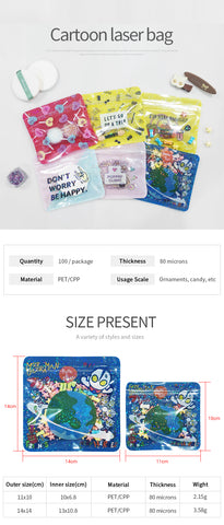 10pcs mixed Laser Hologram Lovely Zipper Bags Small Clear Pouches Accessories Rubber Bands Cosmetics Beauty Makeup Candy Bags